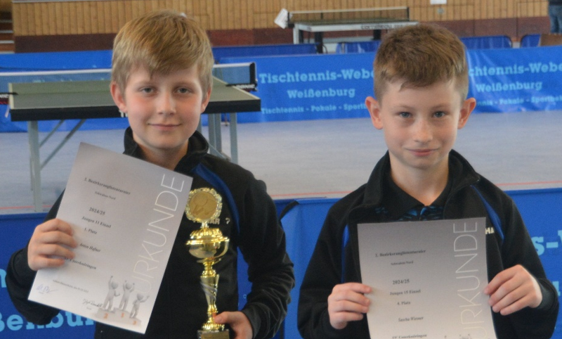 Toni Hafner vom SV Unterknöringen (links im Bild) gewann das 2.Bezirks-Ranglistenturnier der Jungen 11...