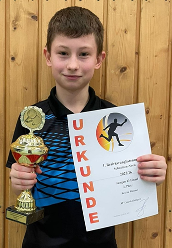 Sascha Wiesner überzeugte 1. Bezirksranglistenturnier mit einem sehr guten 2.Platz und qualifizierte sich damit für das Landesbereichsranglistenturnier.