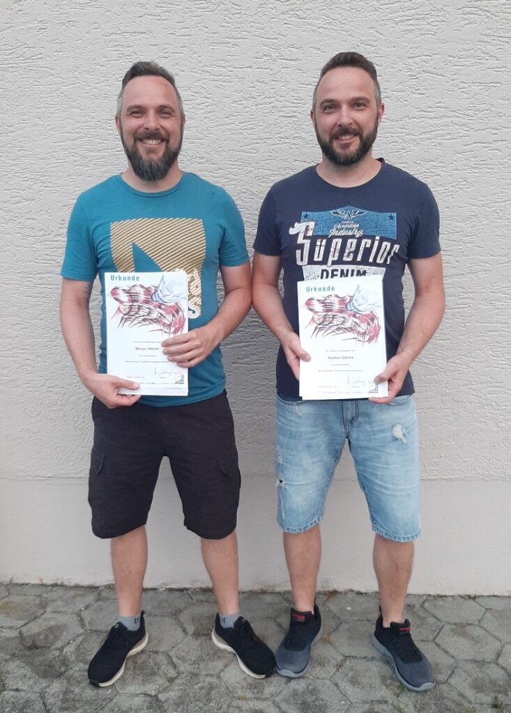 Marcus und Stephan Stöckle erhielten für 30 Jahre Tischtennis Urkunde und Anstecknadel des BTTV. Auf dem Foto fehlt der ebenfalls geehrte Andreas Miller.